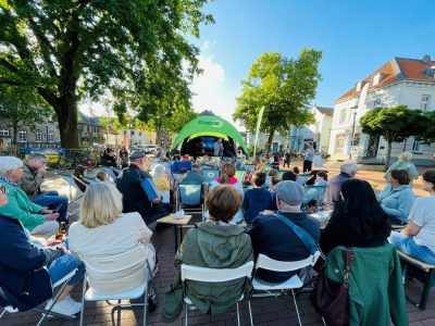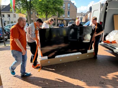 Sommerkino in Waldniel auf dem Markt – so hatten wir geworben und wir freuten uns alle sehr darauf. Wie sehr unsere Vorfreude angesichts der Regenfälle im Laufe der Woche gelitten hat, können sich bestimmt alle denken, die schon einmal ein solches Event, das auf gutes Wetter angewiesen ist, vorbereitet haben. Aber unser Deal mit dem Universum hatte geklappt, oder vielleicht war es auch Karma? Wie auch immer – pünktlich zum Aufbau unserer Sommerkino-Szenerie verzogen sich die Wolken und der Himmel zeigte sich in strahlendem Blau. Da war sie wieder – die Vorfreude und wir machten uns motiviert an den Aufbau.
