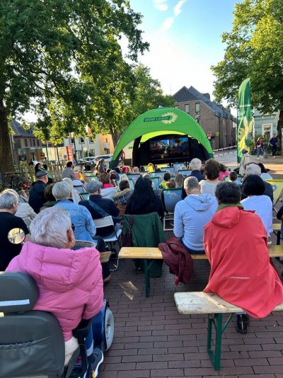 Unser Europaabgeordneter Daniel Freund hatte es sich natürlich auch nicht nehmen lassen, einen Stopp auf seiner Wahlkampftour in Waldniel einzulegen. Am Ende des Films wandte er sich in einer kurzen, aber eindrücklichen Rede ans Publikum und hatte vor allem eine eindringliche Bitte: Bitte geht wählen!