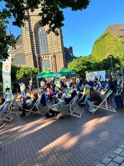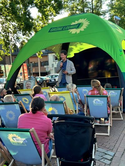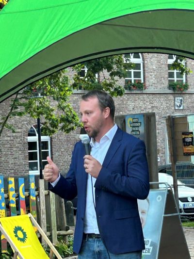 Unser Europaabgeordneter Daniel Freund hatte es sich natürlich auch nicht nehmen lassen, einen Stopp auf seiner Wahlkampftour in Waldniel einzulegen. Am Ende des Films wandte er sich in einer kurzen, aber eindrücklichen Rede ans Publikum und hatte vor allem eine eindringliche Bitte: Bitte geht wählen!