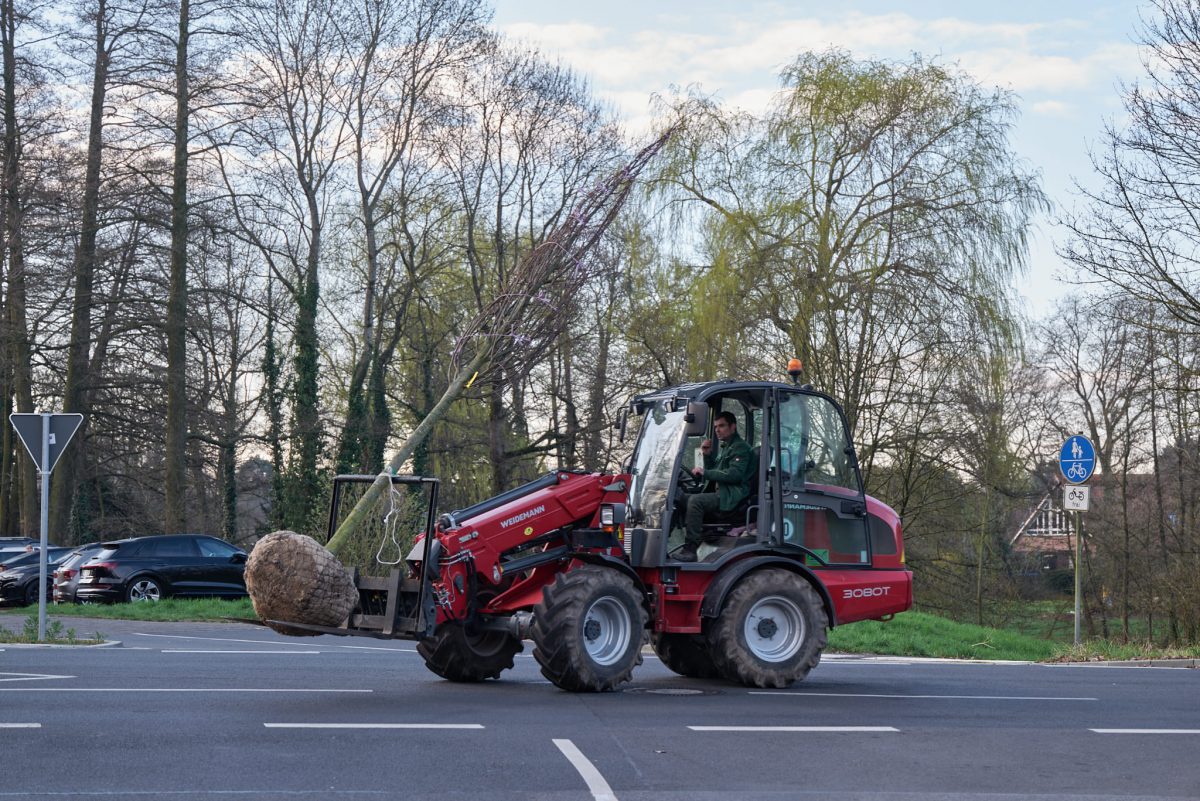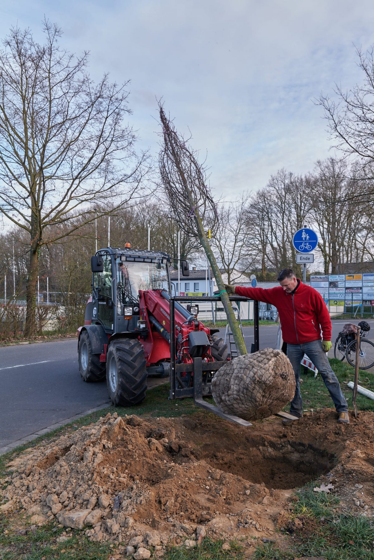 Und so war das junge Bäumchen, das am Samstagmorgen von Pelters geliefert wurde, bereits ein stattlicher Baum, den wir mit vereinten Kräften in die Erde brachten.