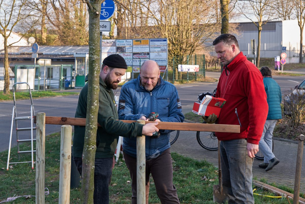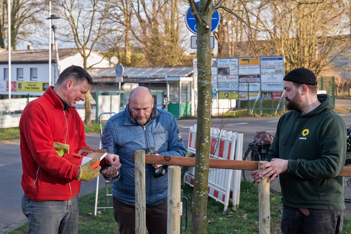 Wenn sich an einem Samstagmorgen noch vor 8 Uhr eine Gruppe Menschen mit Spaten, Seilen, Balken und Pfahlramme trifft, dann können es nur Grüne sein, die mal wieder gemeinsam Größeres auf die Beine – oder besser gesagt – in die Erde stellen wollen.