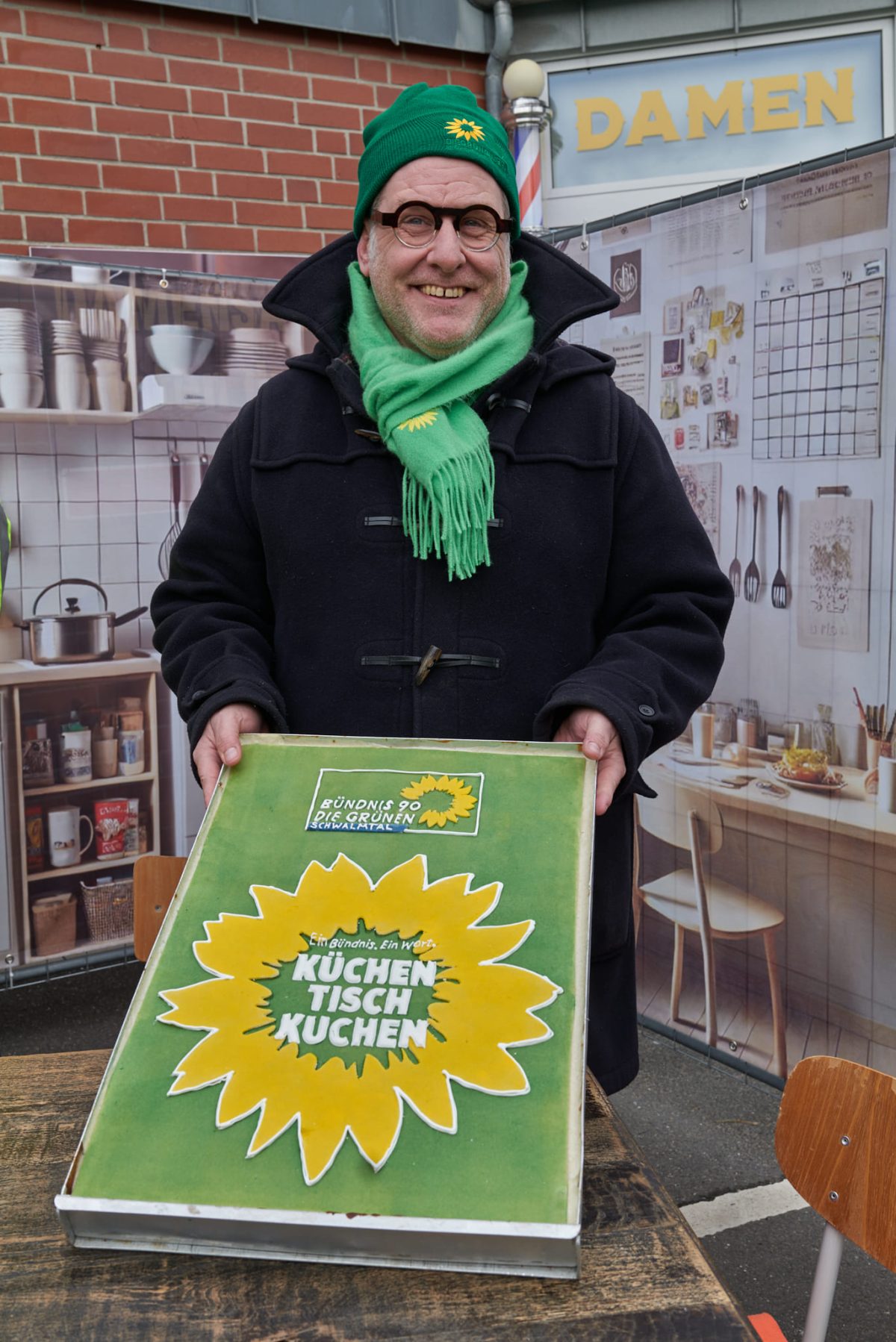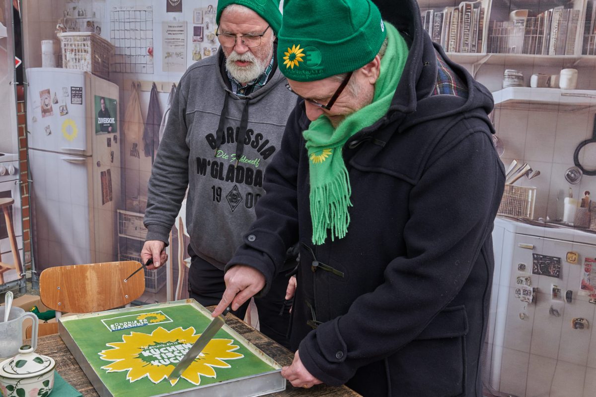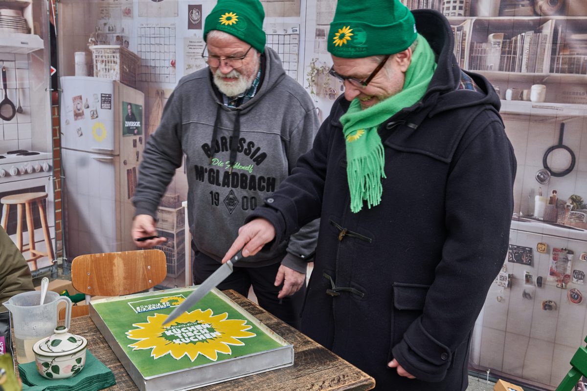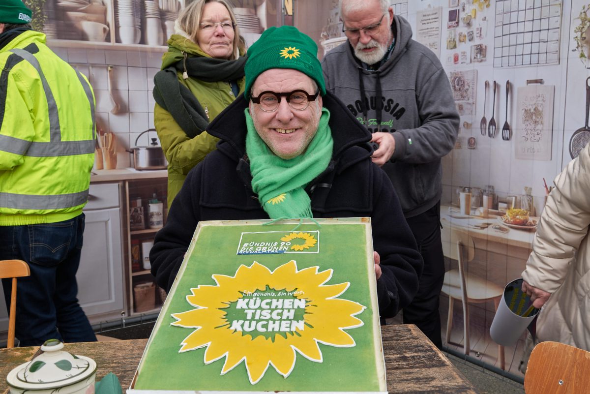 Offenbar optimale Bedingungen für richtig gute Stimmung in herausfordernden Zeiten, für gute Laune statt Geknatsche und Hass, für ein paar schöne Stunden in Amern. Denn keine Spur von mangelnder Motivation im Winterwahlkampf. Im Gegenteil – für Demokratie und Miteinander waren wir Grünen am Start. Ok – ein bisschen lockte sicher auch der leckere Kuchen, den Hans Oehmen extra für uns gebacken und gestaltet hatte. 😉