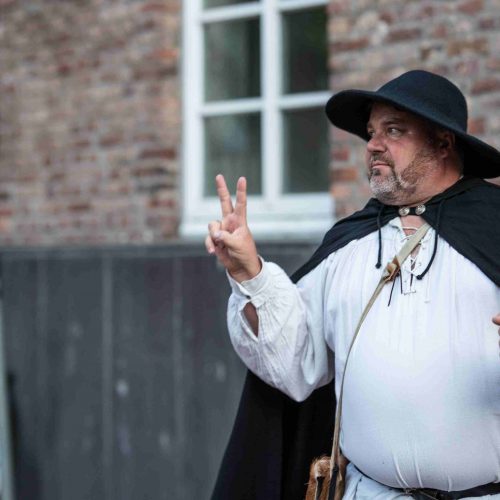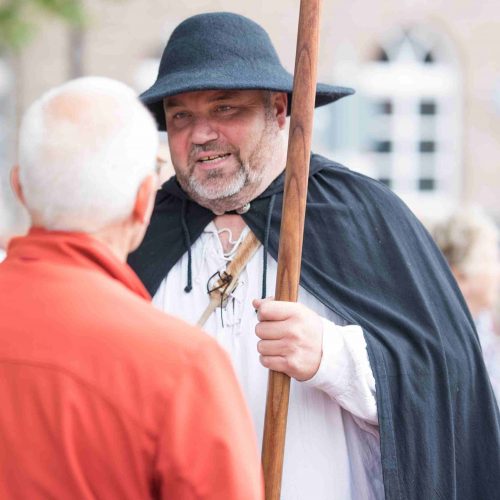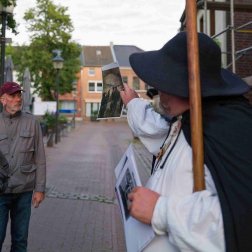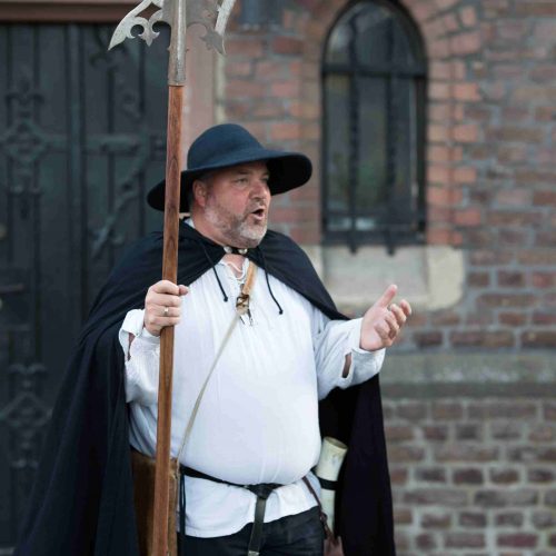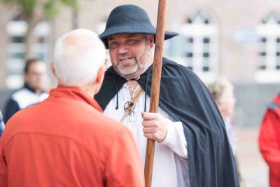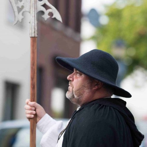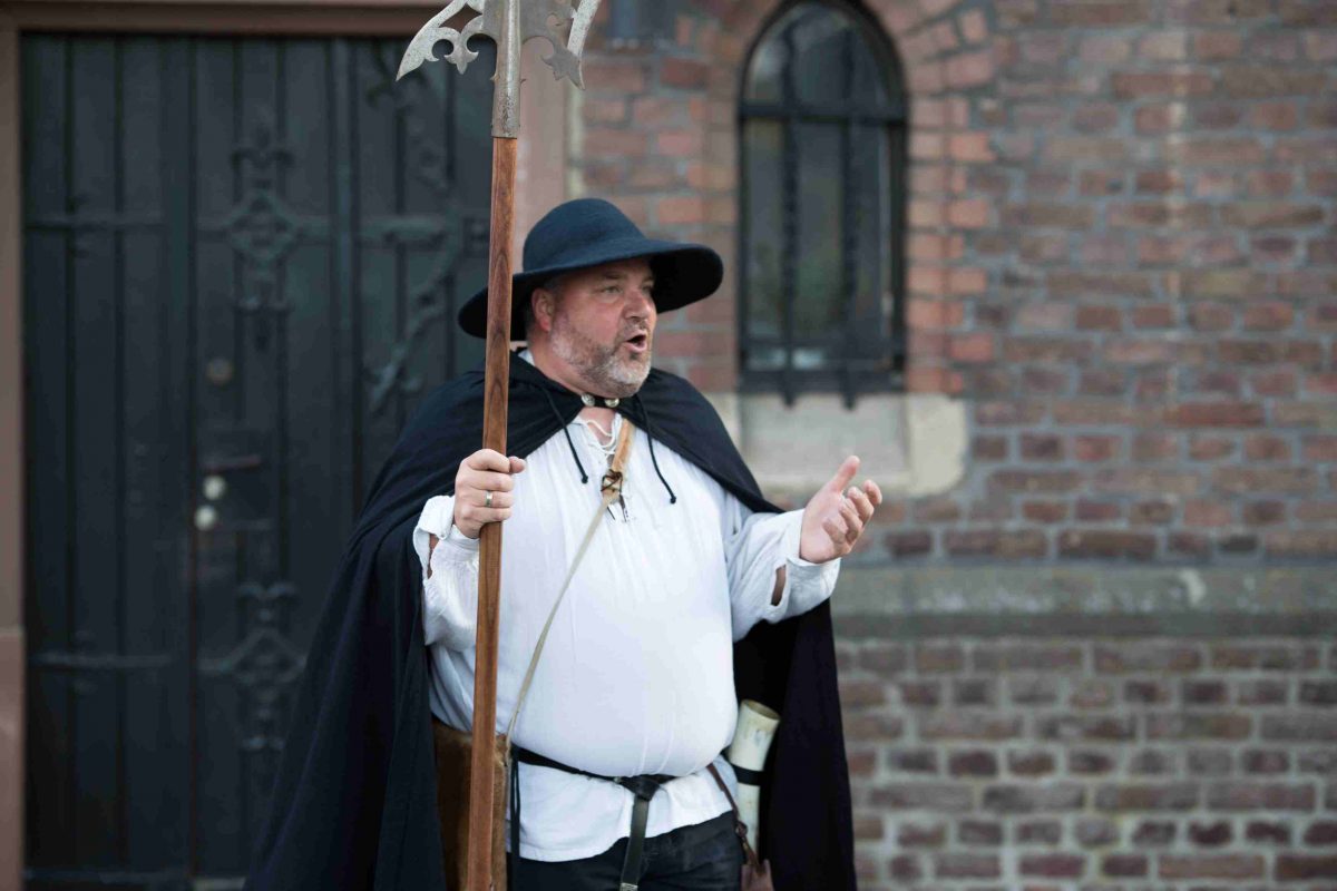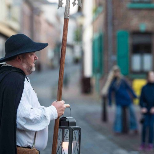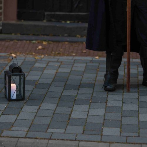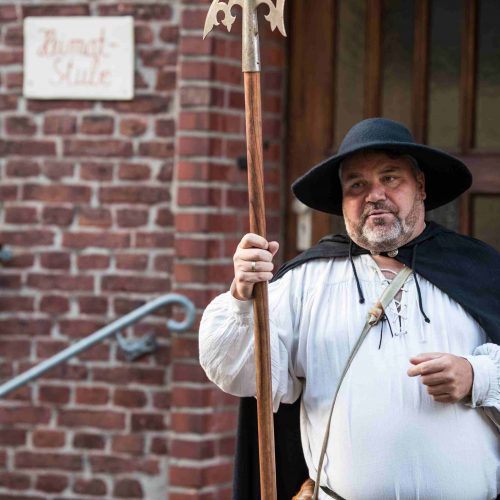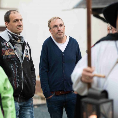 Das war unsere Veranstaltungskündigung, mit der wir auf Facebook unsere Tour mit dem Nachtwächter beworben hatten. Was dann am gestrigen Montag passierte, hat unsere kühnsten Erwartungen weit übertroffen. Etwa 60 Leute waren unserer Einladung gefolgt, der Marktplatz in Waldniel füllte sich immer mehr mit Menschen, die auf den Nächtwächter warteten. Und das, obwohl das Wetter ziemlich unbeständig und auch nicht besonders gemütlich war. Aber viele wollten sich eben diese Gelegenheit nicht entgehen lassen, sich unserer Heimat und ihrer Geschichte auf diese ganz besondere Art zu nähern.