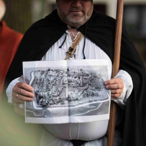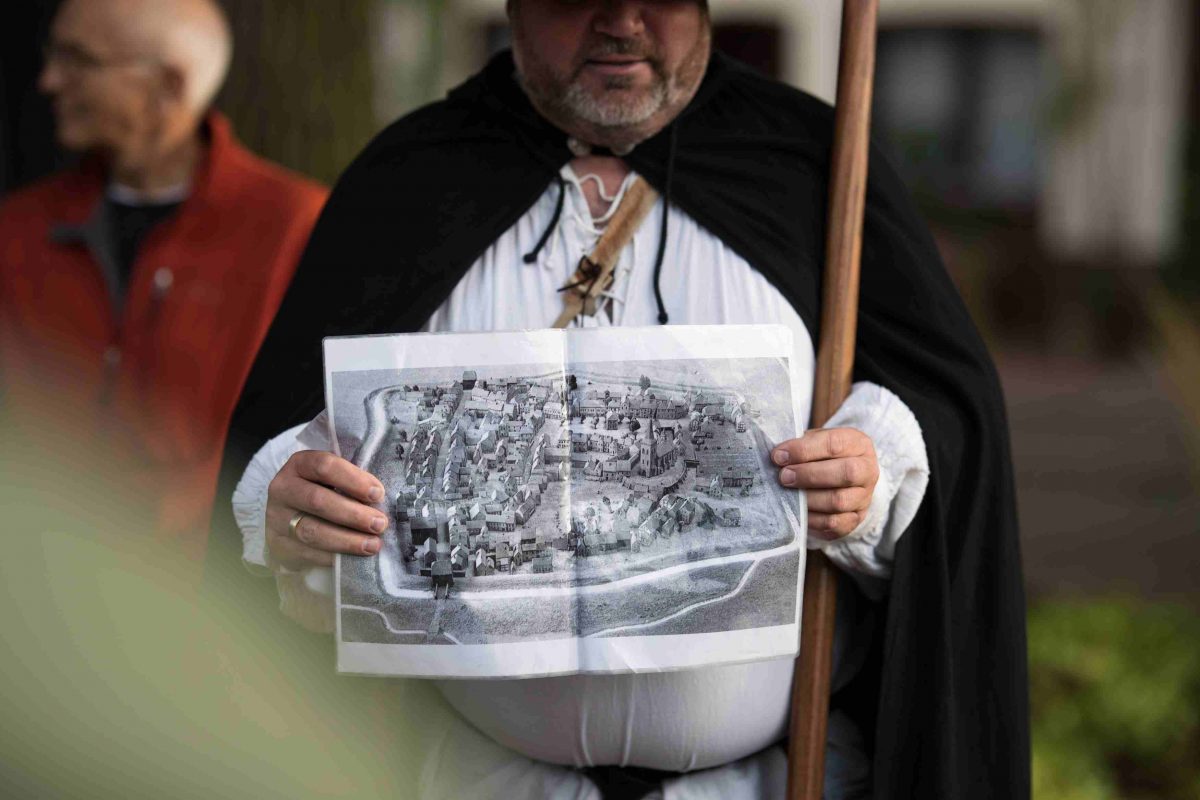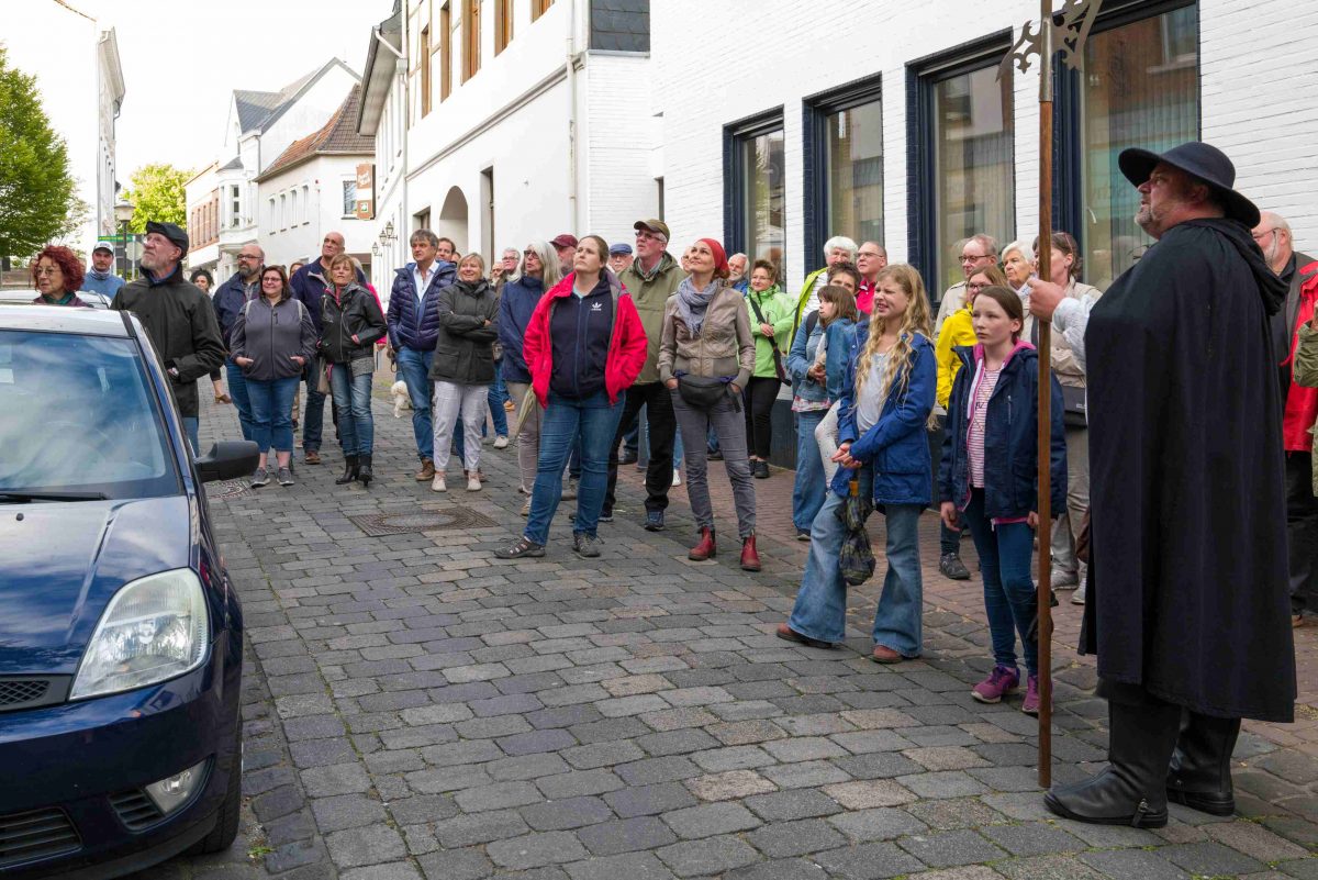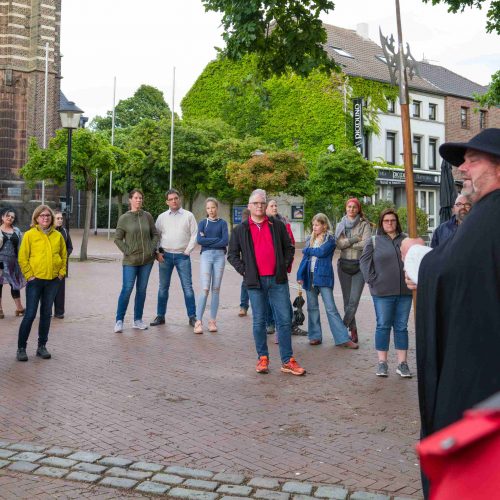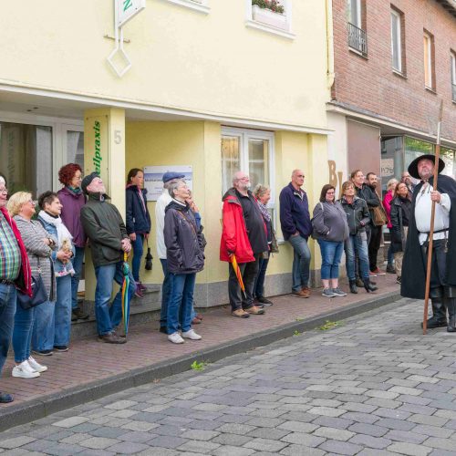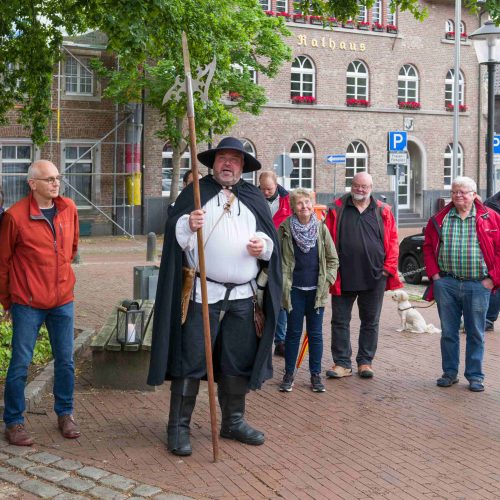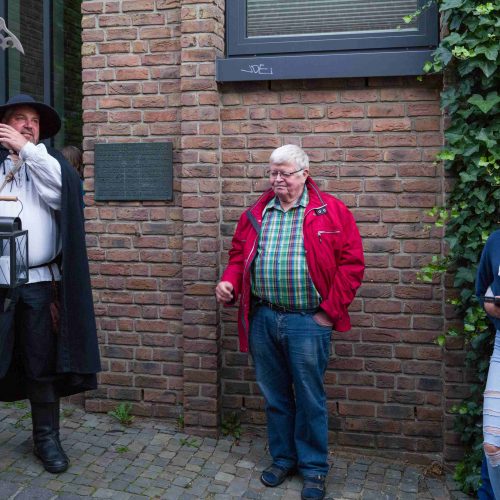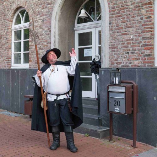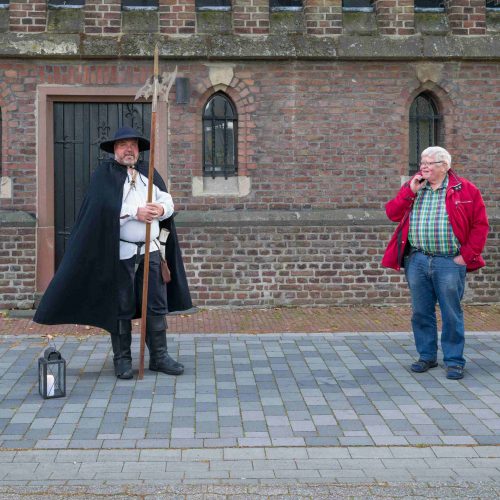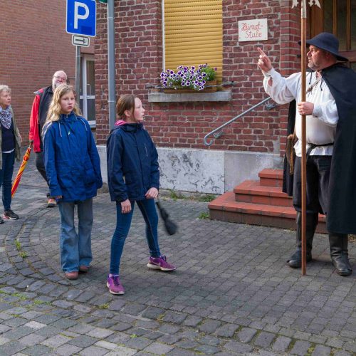 Es ging damit los, dass uns der Nachtwächter erst mal unsere Grenzen aufzeigte. Und er zeigte uns auch die Stellen, wo früher die Waldnieler Tore waren und wie der Wall verlief.