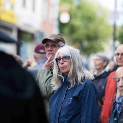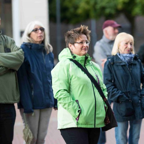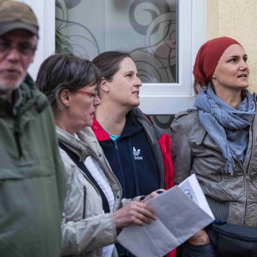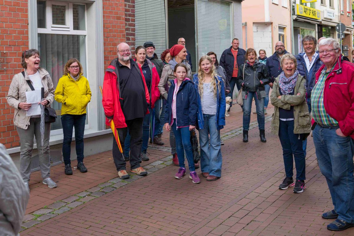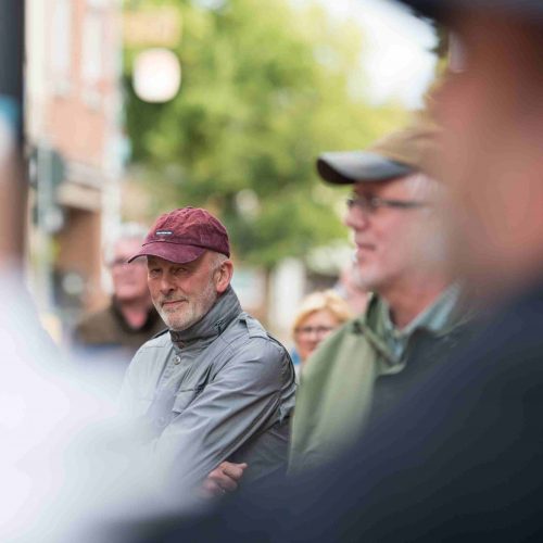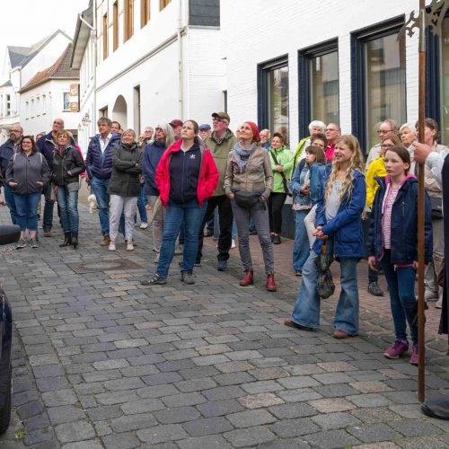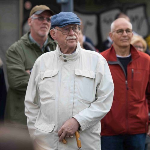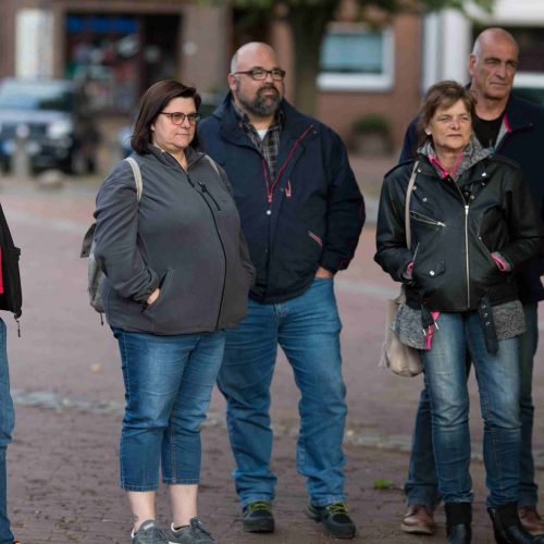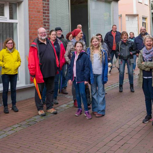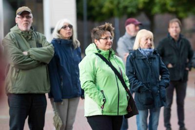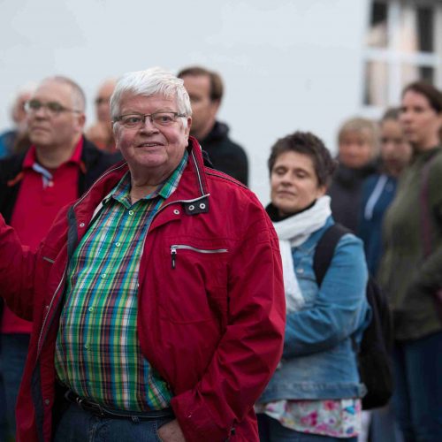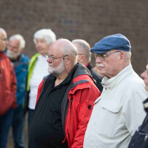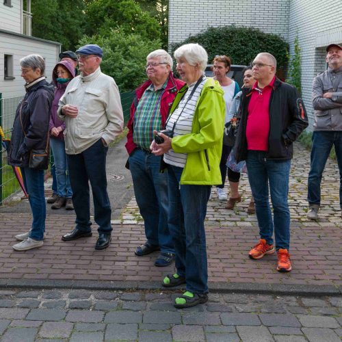 Und weil es so viele schöne Fotos sind – auch so viele von einzelnen Teilnehmer*innen – die insgesamt einen wunderbaren Eindruck von dieser Führung und vor allem von dem Interesse der Leute vermitteln, sind sie hier nun noch einmal alle. Ein Klick aufs Bild zeigt das Bild in Originalgröße. Sollte sich jemand entdecken, der hier nicht gezeigt werden möchte: Kurze Nachricht genügt, wir entfernen das Foto dann sofort. Sollte jemand ein Foto von sich selbst haben wollen, weil es ihm oder ihr besonders gut gefällt, reicht auch eine Nachricht, wir schicken es dann gerne zu. In beiden Fällen bitte einfach eine kurze Mail schicken. (Und beim nächsten Montagstermin denken wir dann auch an Buttons für alle. Versprochen.)