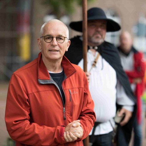 Und dann kam er – der Nachtwächter von Waldniel. Der Vorsitzende der Grünen, Dr. Thomas Nieberding begrüßte ihn und natürlich auch die zahlreich erschienenen Interessierten. Danach begrüßte uns auch der Nachtwächter, der im richtigen Leben Hans-Gerd Küppers heißt.