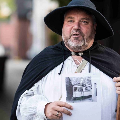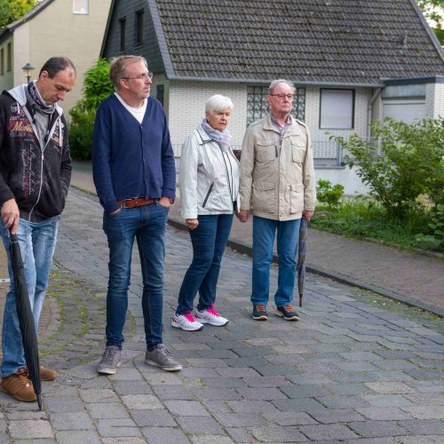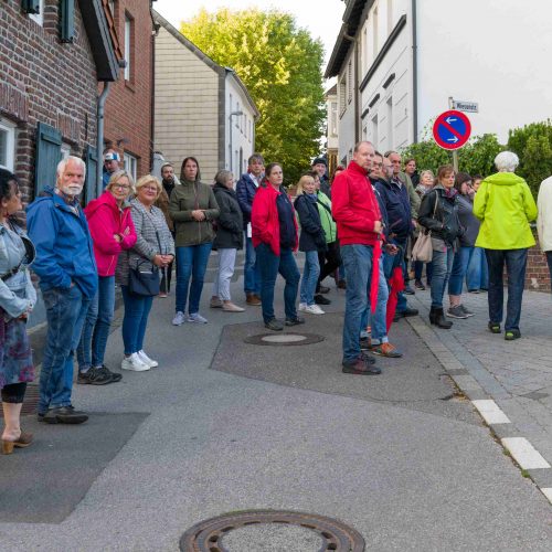 Aber es gab auch ernste Themen wie die Stolpersteine in der Pumpenstraße, die an das Schicksal jüdischer Bürger*innen in Waldniel erinnern. Und natürlich waren in der Pumpenstraße selbst auch die Pumpen ein Thema. Ein Prachtexemplar hat Werner Lüders – übrigens wieder der Fotograf aller Bilder, vielen Dank Werner! – im Bild festgehalten. Früher, als es noch keine Wasserleitungen im Dorf gab, holten sich die Waldnieler ihr Wasser in eben jener Pumpengasse. Jeder Eimer Wasser, den man abpumpte, wurde im „Wasserbuch“ notiert und man musste sein Wasser entsprechend bezahlen.