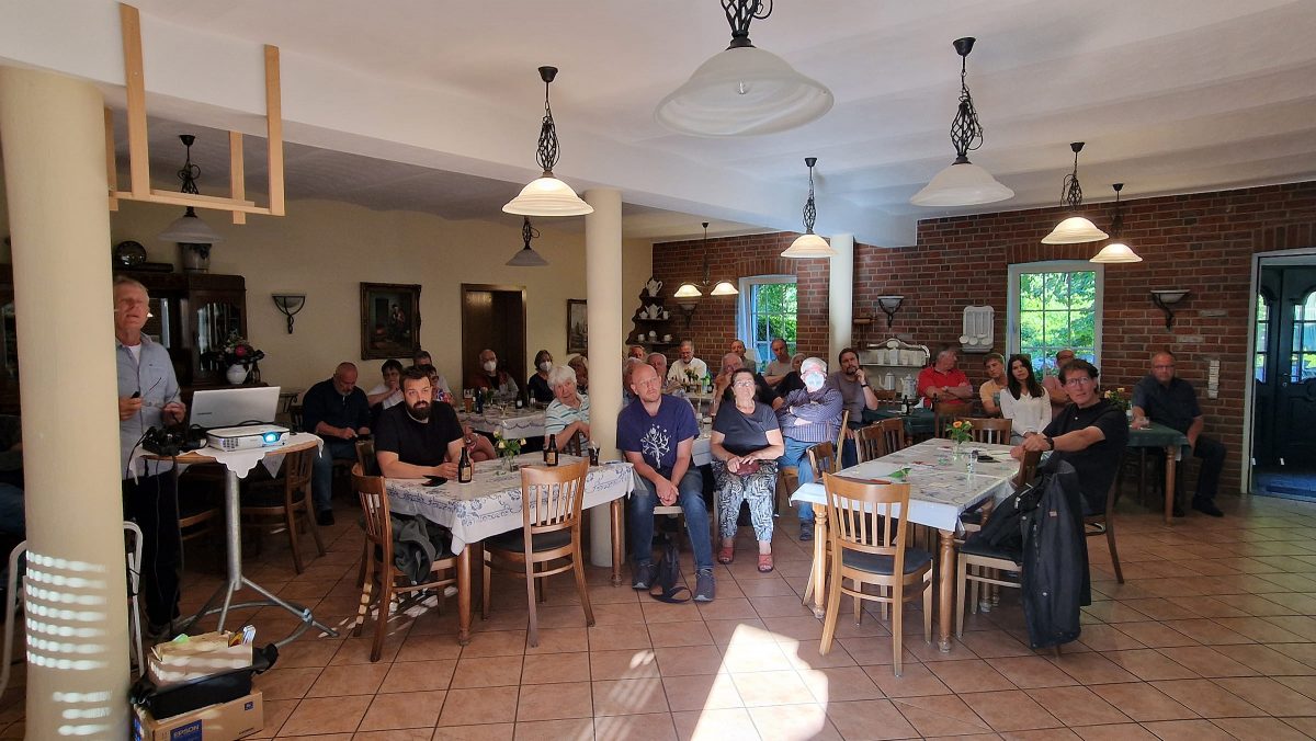 „Endlich wieder grüner Montag“ – so begrüßte OV-Sprecher Paul Lentzen die Menschen, die ins Café Bolten nach Lüttelforst gekommen waren, um über die Landwirtschaft im Klimawandel zu diskutieren oder sich zu informieren. Und das waren an diesem Montagabend gar nicht so wenig –  das Café war nahezu bis auf den letzten Platz besetzt.