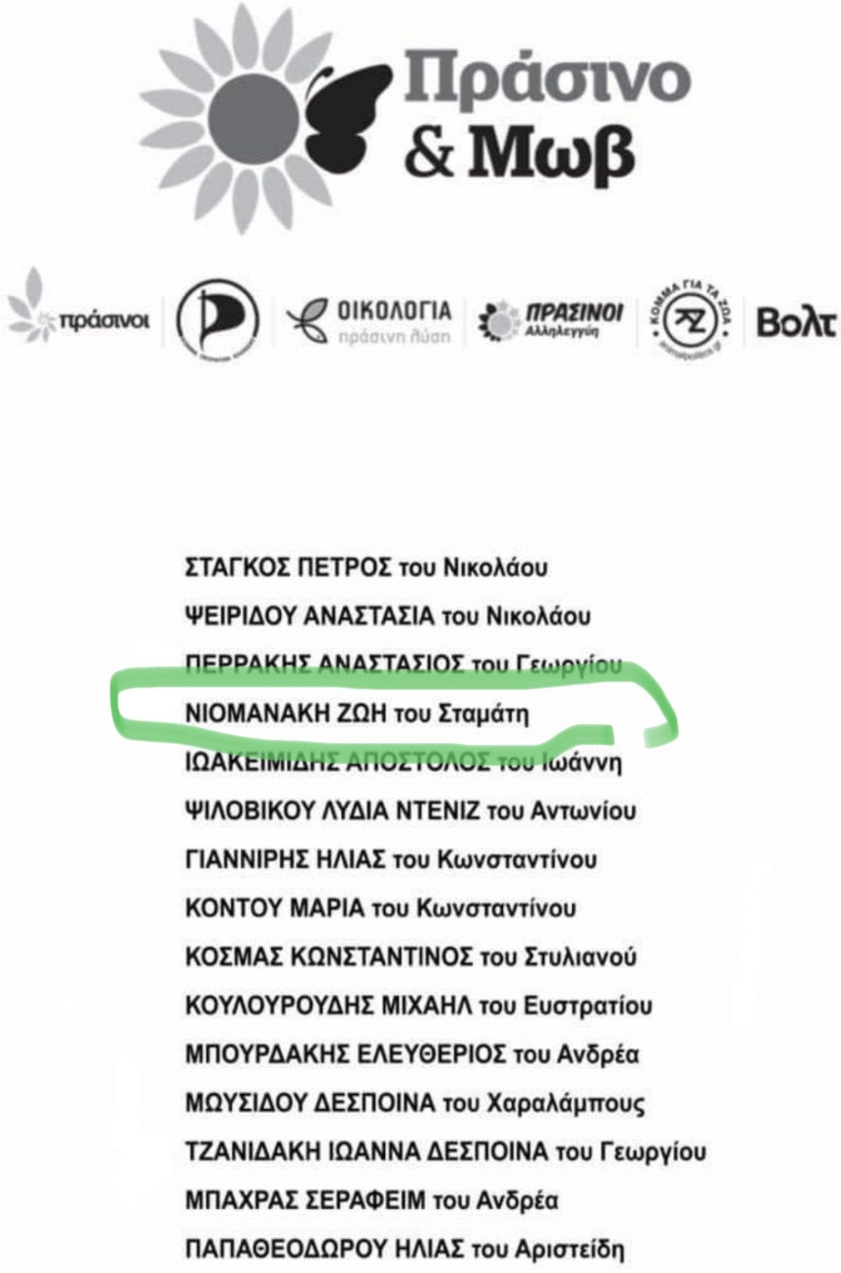 Für diese Wahl hat das 7-Parteien-Bündnis insgesamt 259 Abgeordnete aufgestellt, Zoe steht auf Listenplatz 4 auf einem gesonderten Wahlzettel, auf dem insgesamt 15 Personen gelistet sind, die keinem kleinerem Wahlkreis zugeordnet sind, sondern aus ganz Griechenland und dem Ausland gewählt werden können. Die Personen auf diesem Wahlzettel sind allesamt Personen, die durch besondere Verdienste landesweit Ruhm, Ehre und einen dementsprechenden Bekanntheitsgrad genießen. Hauptsächlich werden diese Plätze mit hochrangigen Wissenschaftler*innen und Prominenten aus Kunst und Kultur besetzt.