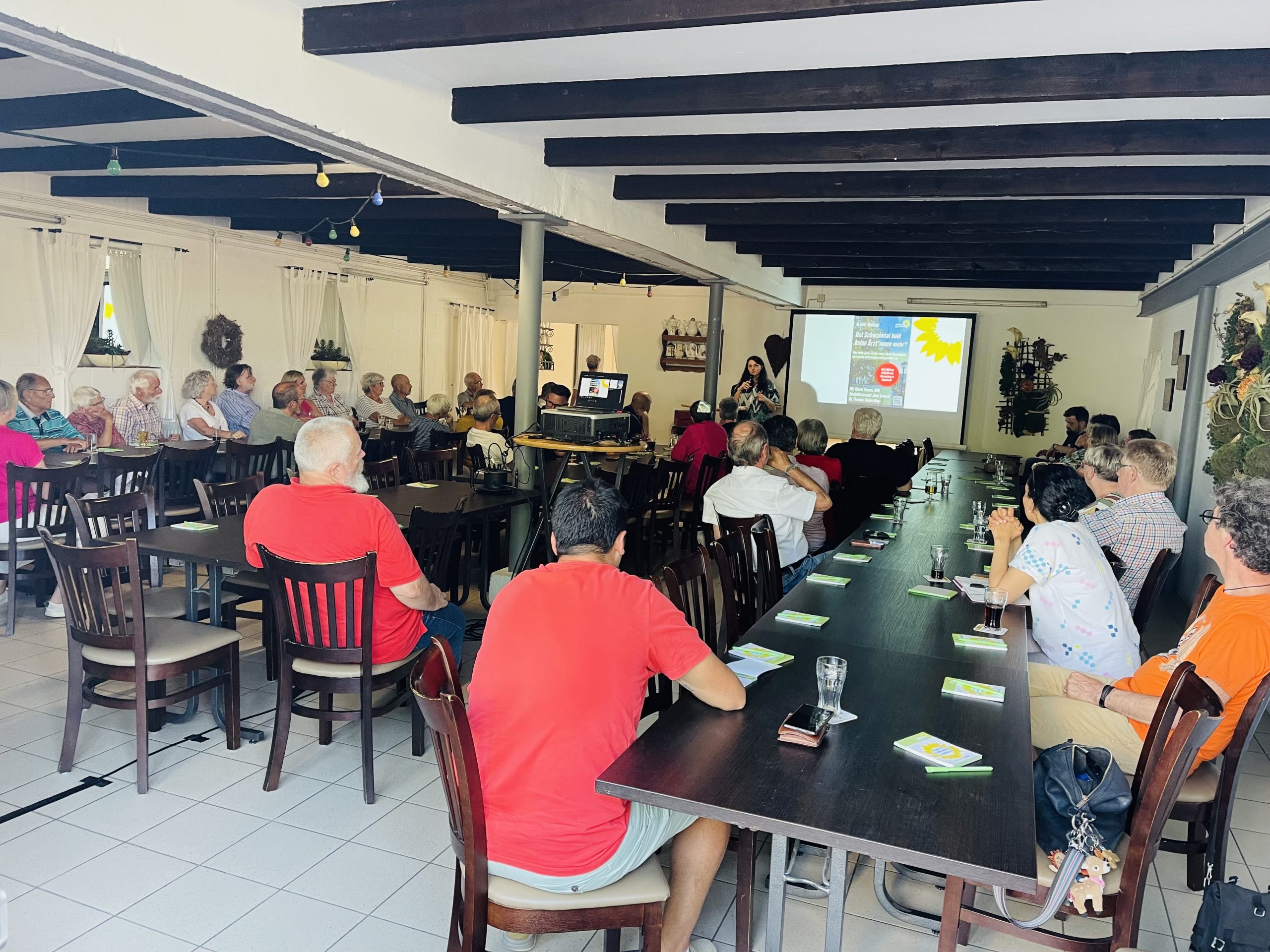 Zwischen den einzelnen Vorträgen hatten die Gäste Gelegenheit, Fragen zu stellen oder Anmerkungen zu machen. Das wurde rege genutzt. Themen waren die Krankenhaussituation oder auch die langen Wartezeiten auf Facharzttermine, insbesondere im psychotherapeutischen Bereich. Die Dramatik der Lage in Waldniel brachte Dr. Arens noch einmal zur Sprache: Es gäbe 7,5 Sitze, wovon 6 besetzt seien. Von diesen 6 Hausärzt*innen, sei nur einer unter 60 Jahre, und keiner von ihnen arbeite Vollzeit, so führte er aus.* Gleichzeitig wurde das Beispiel einer Hausarztpraxis in Amern als positives Beispiel genannt. Dort habe man es erfolgreich geschafft, 3 junge Nachwuchsärzte einzustellen.